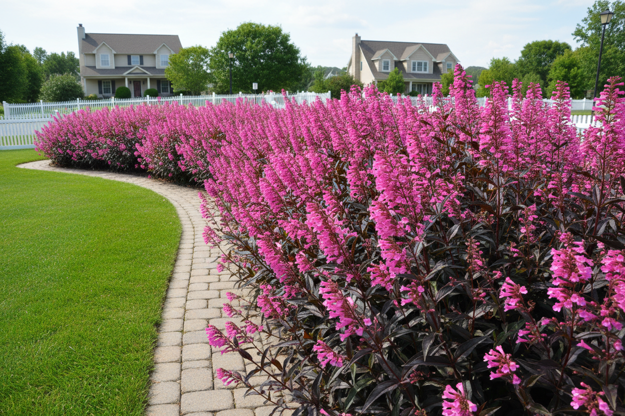 This exceptional Penstemon variety showcases striking deep purple foliage that maintains its rich hue through intense heat and dry spells. Robust stems support vibrant pink blooms that serve as a magnet for butterflies and hummingbirds, adding dynamic movement to your garden. A superior choice for mass planting and gardeners seeking dramatic color contrast and reliable performance in challenging conditions. Breeder: Dale Lindgren